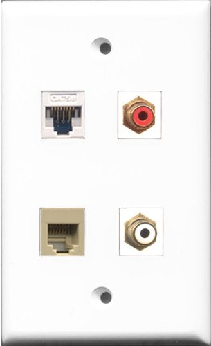 RiteAV - and 1 Port RCA Red and 1 Port RCA White and 1 Port Phone RJ11 RJ12 Beige and 1 Port Cat5e Ethernet White Wall Plate