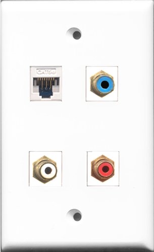 RiteAV 1 Port RCA Red and 1 Port RCA White and 1 Port RCA Blue and 1 Port Cat5e Ethernet White Wall Plate
