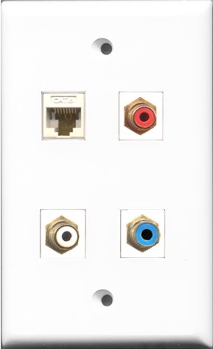 RiteAV 1 Port RCA Red and 1 Port RCA White and 1 Port RCA Blue and 1 Port Cat6 Ethernet White Wall Plate