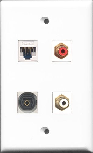 RiteAV 1 Port RCA Red and 1 Port RCA White and 1 Port Toslink and 1 Port Cat5e Ethernet White Wall Plate