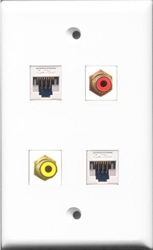 RiteAV 1 Port RCA Red and 1 Port RCA Yellow 2 Port Cat5e Ethernet White Wall Plate