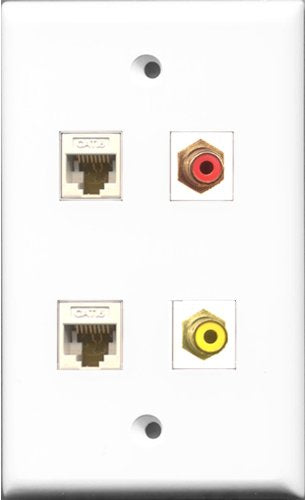 RiteAV - and 1 Port RCA Red and 1 Port RCA Yellow 2 Port Cat6 Ethernet White Wall Plate