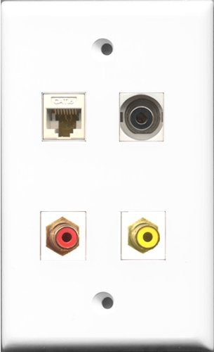 RiteAV 1 Port RCA Red and 1 Port RCA Yellow and 1 Port 3.5mm and 1 Port Cat6 Ethernet White Wall Plate