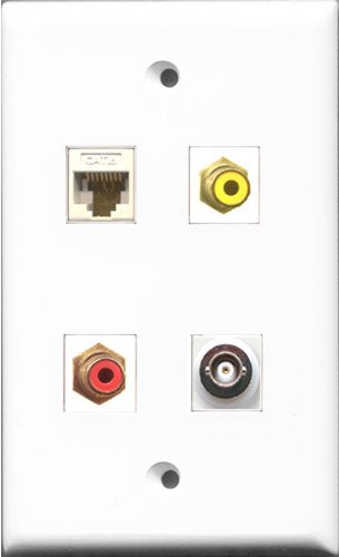 RiteAV 1 Port RCA Red and 1 Port RCA Yellow and 1 Port BNC and 1 Port Cat6 Ethernet White Wall Plate