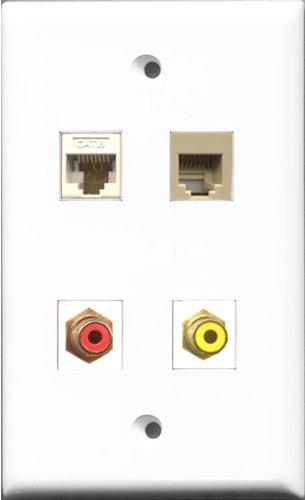 RiteAV - and 1 Port RCA Red and 1 Port RCA Yellow and 1 Port Phone RJ11 RJ12 Beige and 1 Port Cat6 Ethernet White Wall Plate