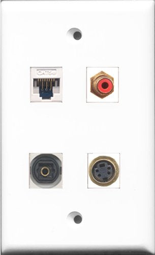 RiteAV 1 Port RCA Red and 1 Port S-Video and 1 Port Toslink and 1 Port Cat5e Ethernet White Wall Plate