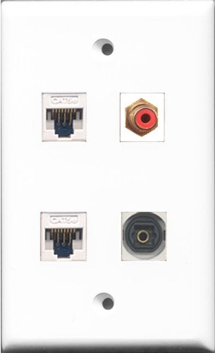 RiteAV 1 Port RCA Red and 1 Port Toslink 2 Port Cat5e Ethernet White Wall Plate
