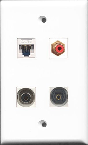 RiteAV 1 Port RCA Red and 1 Port Toslink and 1 Port 3.5mm and 1 Port Cat5e Ethernet White Wall Plate