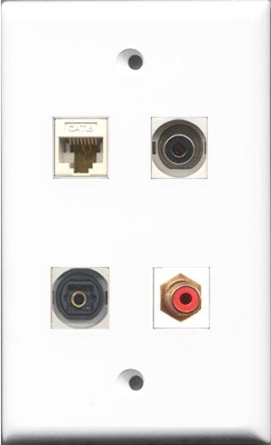 RiteAV 1 Port RCA Red and 1 Port Toslink and 1 Port 3.5mm and 1 Port Cat6 Ethernet White Wall Plate