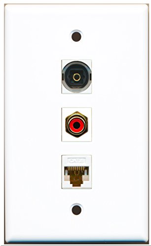 RiteAV - 1 Port RCA Red and 1 Port Toslink Digital Audio and 1 Port Cat6 Ethernet White Wall Plate
