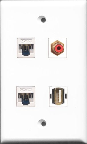RiteAV 1 Port RCA Red and 1 Port USB A-A 2 Port Cat5e Ethernet White Wall Plate