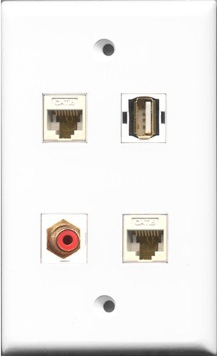 RiteAV 1 Port RCA Red and 1 Port USB A-A 2 Port Cat6 Ethernet White Wall Plate