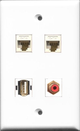 RiteAV 1 Port RCA Red and 1 Port USB A-A 2 Port Cat6 Ethernet White Wall Plate