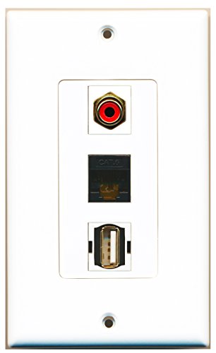 RiteAV - 1 Port RCA Red and 1 Port USB A-A and 1 Port Cat6 Ethernet Black Decorative Wall Plate Decorative