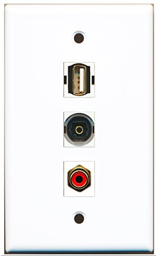 RiteAV - 1 Port RCA Red and 1 Port USB A-A and 1 Port Toslink Wall Plate