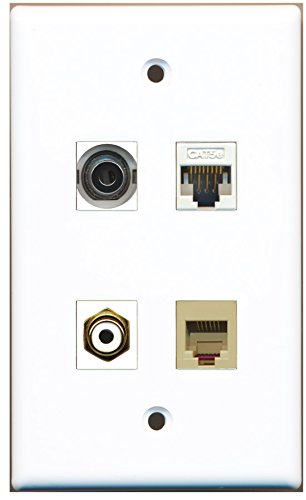 RiteAV - 1 Port RCA White 1 Port Phone RJ11 RJ12 Beige 1 Port 3.5mm 1 Port Cat5e Ethernet White Wall Plate
