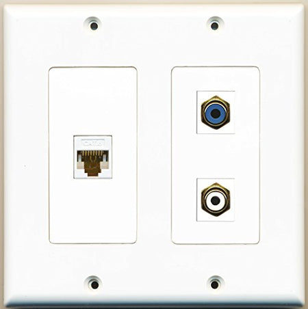 RiteAV - 1 Port RCA White 1 Port RCA Blue 1 Port Cat6 Ethernet White - 2 Gang Wall Plate