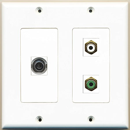 RiteAV - 1 Port RCA White 1 Port RCA Green 1 Port 3.5mm - 2 Gang Wall Plate