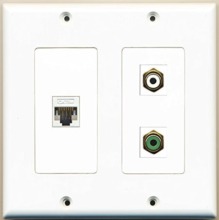 RiteAV - 1 Port RCA White 1 Port RCA Green 1 Port Cat5e Ethernet White - 2 Gang Wall Plate