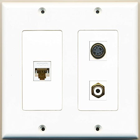 RiteAV - 1 Port RCA White 1 Port S-Video 1 Port Cat6 Ethernet White - 2 Gang Wall Plate