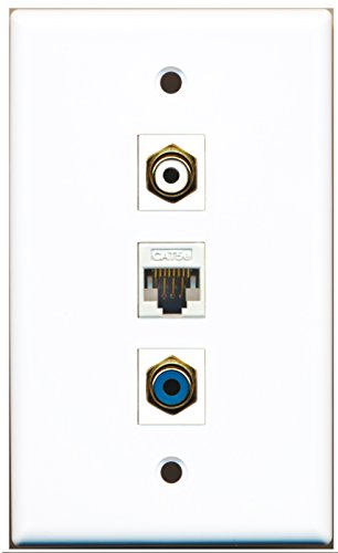 RiteAV - 1 Port RCA White 1 RCA Blue 1 Cat5e Ethernet White Wall Plate