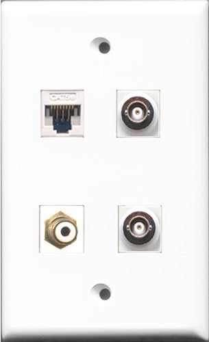 RiteAV - 1 Port RCA White 2 Port BNC and 1 Port Cat5e Ethernet White Wall Plate