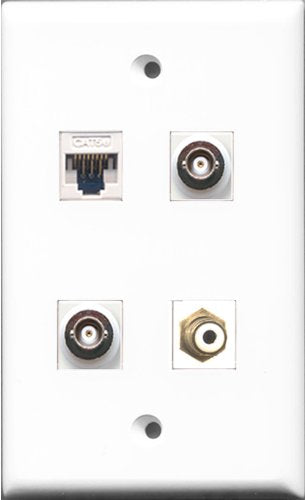 RiteAV - 1 Port RCA White 2 Port BNC and 1 Port Cat5e Ethernet White Wall Plate