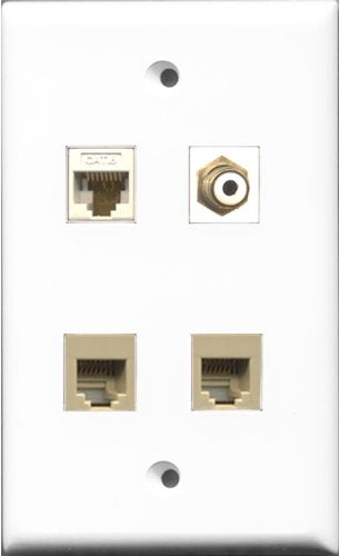 RiteAV 1 Port RCA White 2 Port Phone RJ11 RJ12 Beige and 1 Port Cat6 Ethernet White Wall Plate