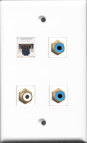 RiteAV 1 Port RCA White 2 Port RCA Blue and 1 Port Cat5e Ethernet White Wall Plate
