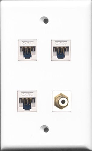 RiteAV - 1 Port RCA White 3 Port Cat5e Ethernet White Wall Plate
