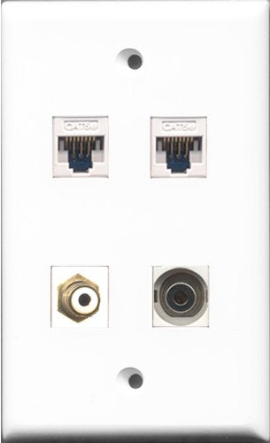RiteAV - 1 Port RCA White and 1 Port 3.5mm 2 Port Cat5e Ethernet White Wall Plate