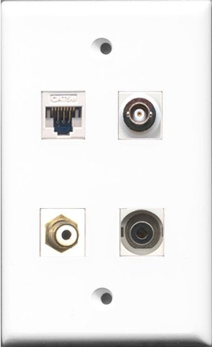 RiteAV - 1 Port RCA White and 1 Port 3.5mm and 1 Port BNC and 1 Port Cat5e Ethernet White Wall Plate