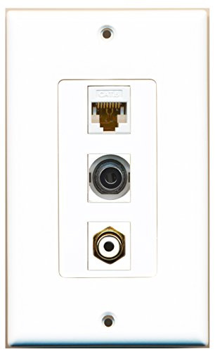 RiteAV - 1 Port RCA White and 1 Port 3.5mm and 1 Port Cat6 Ethernet White Decora Wall Plate Decora
