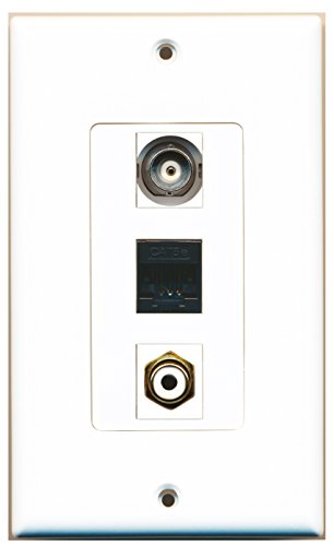 RiteAV - 1 Port RCA White and 1 Port BNC and 1 Port Cat5e Ethernet Black Wall Plate Decorative