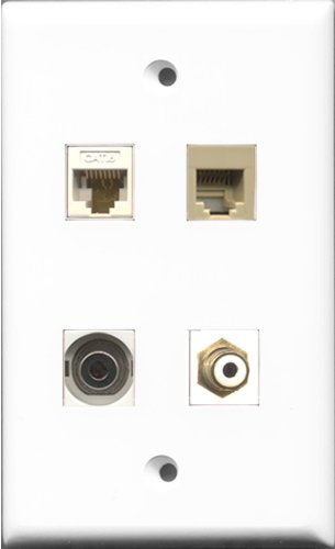 RiteAV 1 Port RCA White and 1 Port Phone RJ11 RJ12 Beige and 1 Port 3.5mm and 1 Port Cat6 Ethernet White Wall Plate
