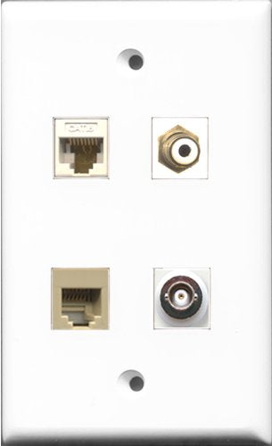 RiteAV 1 Port RCA White and 1 Port Phone RJ11 RJ12 Beige and 1 Port BNC and 1 Port Cat6 Ethernet White Wall Plate