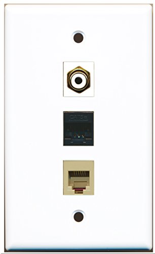 RiteAV - 1 Port RCA White and 1 Port Phone RJ11 RJ12 Beige and 1 Port Cat5e Ethernet Black Wall Plate