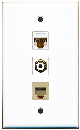 RiteAV - 1 Port RCA White and 1 Port Phone RJ11 RJ12 Beige and 1 Port Cat6 Ethernet White Wall Plate