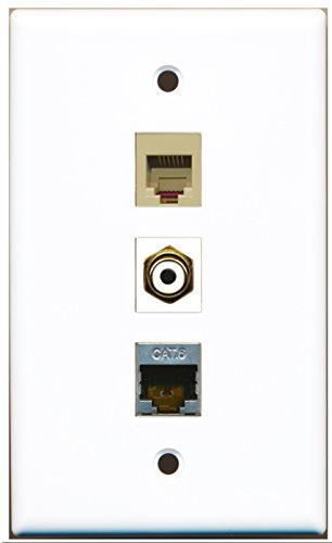 RiteAV - 1 Port RCA White and 1 Port Phone RJ11 RJ12 Beige and 1 Port Shielded Cat6 Ethernet Wall Plate