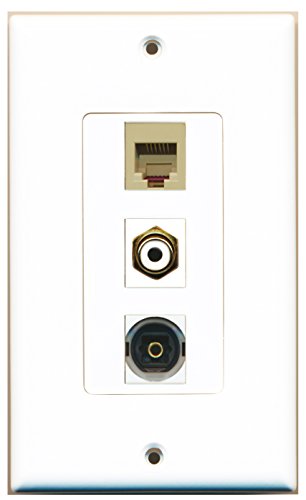 RiteAV - 1 Port RCA White and 1 Port Phone RJ11 RJ12 Beige and 1 Port Toslink Decorative Wall Plate Decorative