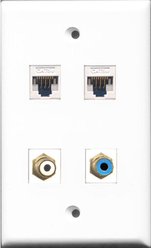 RiteAV - 1 Port RCA White and 1 Port RCA Blue 2 Port Cat5e Ethernet White Wall Plate