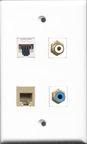 RiteAV 1 Port RCA White and 1 Port RCA Blue and 1 Port Phone RJ11 RJ12 Beige and 1 Port Cat5e Ethernet White Wall Plate