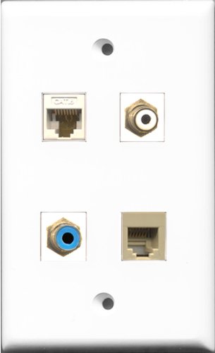 RiteAV 1 Port RCA White and 1 Port RCA Blue and 1 Port Phone RJ11 RJ12 Beige and 1 Port Cat6 Ethernet White Wall Plate