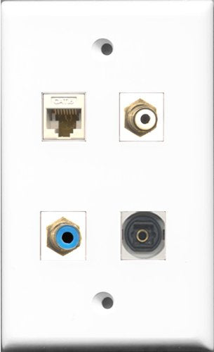 RiteAV 1 Port RCA White and 1 Port RCA Blue and 1 Port Toslink and 1 Port Cat6 Ethernet White Wall Plate