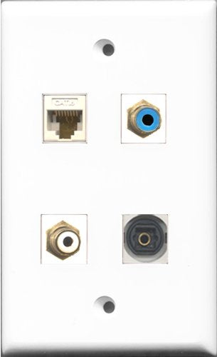 RiteAV 1 Port RCA White and 1 Port RCA Blue and 1 Port Toslink and 1 Port Cat6 Ethernet White Wall Plate