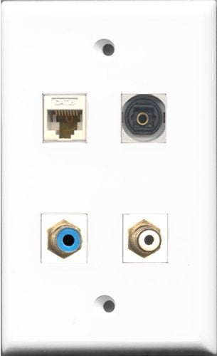 RiteAV 1 Port RCA White and 1 Port RCA Blue and 1 Port Toslink and 1 Port Cat6 Ethernet White Wall Plate