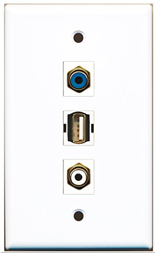 RiteAV - 1 Port RCA White and 1 Port RCA Blue and 1 Port USB A-A Wall Plate