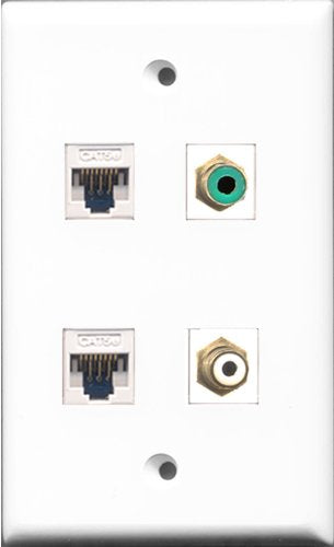 RiteAV 1 Port RCA White and 1 Port RCA Green 2 Port Cat5e Ethernet White Wall Plate