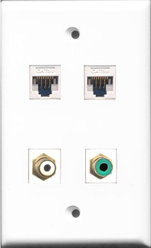RiteAV - 1 Port RCA White and 1 Port RCA Green 2 Port Cat5e Ethernet White Wall Plate
