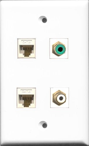 RiteAV 1 Port RCA White and 1 Port RCA Green 2 Port Cat6 Ethernet White Wall Plate